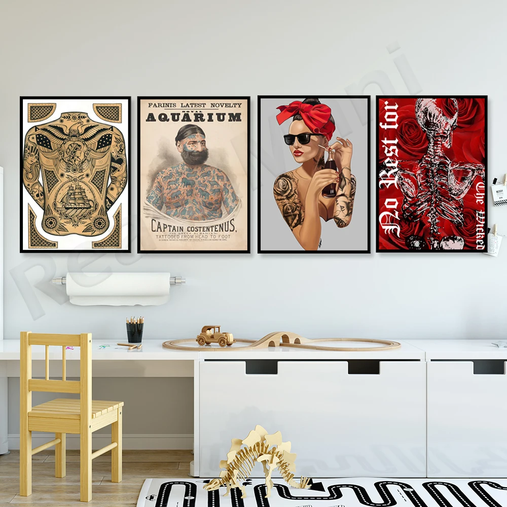 Tattoo Style Poster No Rest For The Wicked Professional Tattoo Girl Tattoo 60 S Rock Girl Handkerchief Promotional Art Print Painting Calligraphy Aliexpress